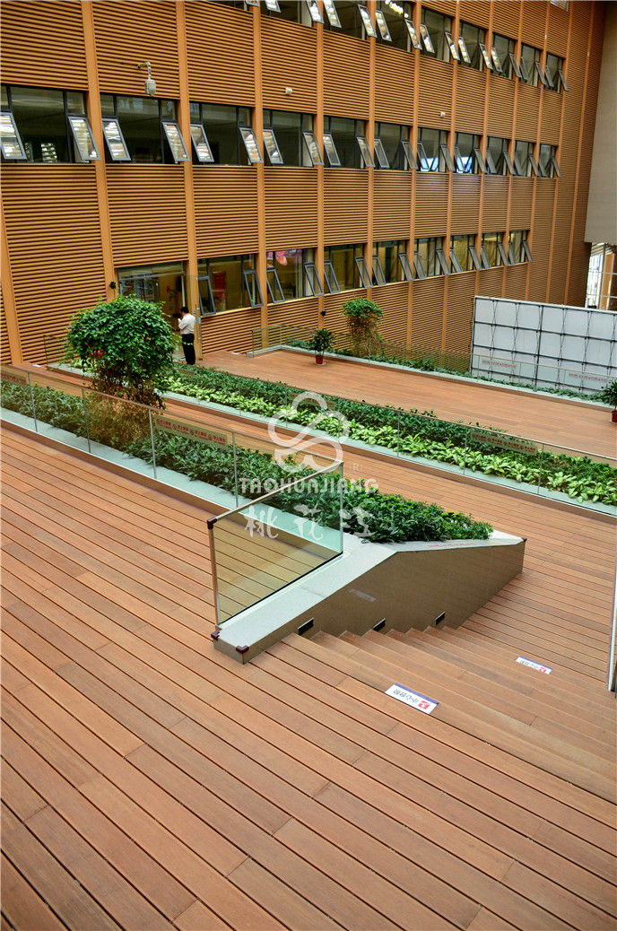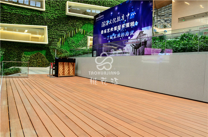 濱海新區(qū)文化中心項目中的市民活動中心區(qū)域采用桃花江戶外防腐竹地板。竹材深厚的文化底蘊與其優(yōu)異自然環(huán)保的性能一直是文化場館建設(shè)材料。